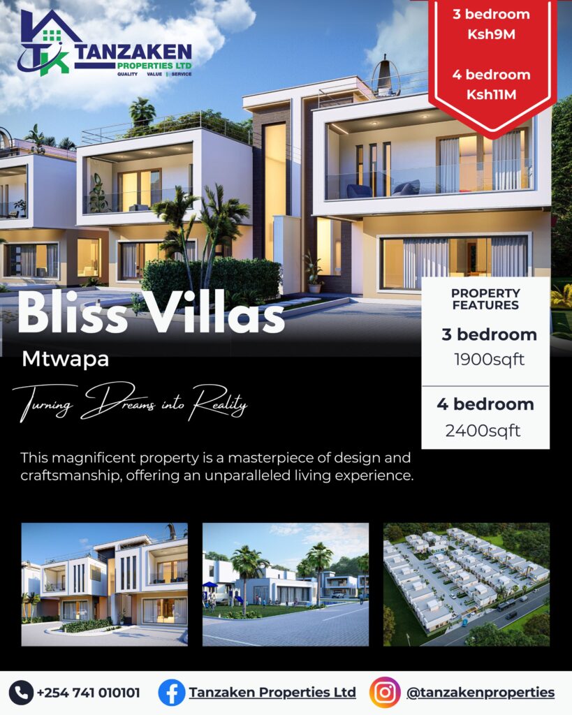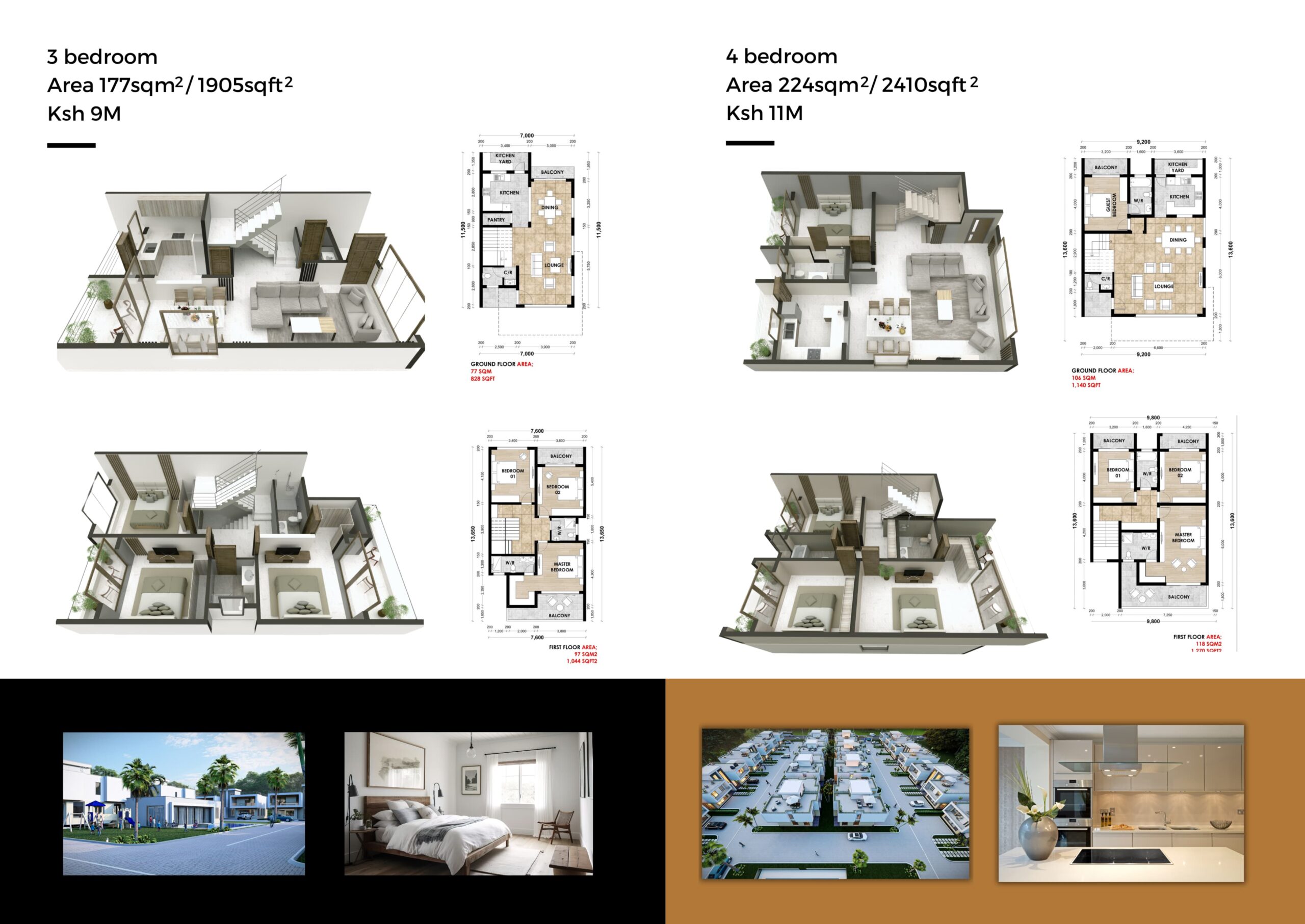 Pricing: 3 bedroom 1900sqft @ 3m 4 bedroom 2400sqft @ 11m Deposit 30%, Pay balance over 18 months period.